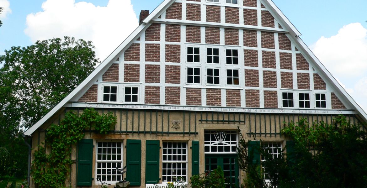 Het vakwerkhuis aan de Bachstraße 10 stamt uit de tijd rond 1750. In deze woning richtte de handelaar Johann Heinrich Sweering in 1818 een groothandel in linnen op. Zijn gelijknamige zoon beleefde halverwege de 19de eeuw de beginfase van de industrialisatie en richtte in 1857 als een van de eerste fabrikanten in het Münsterland een mechanische weverij op.