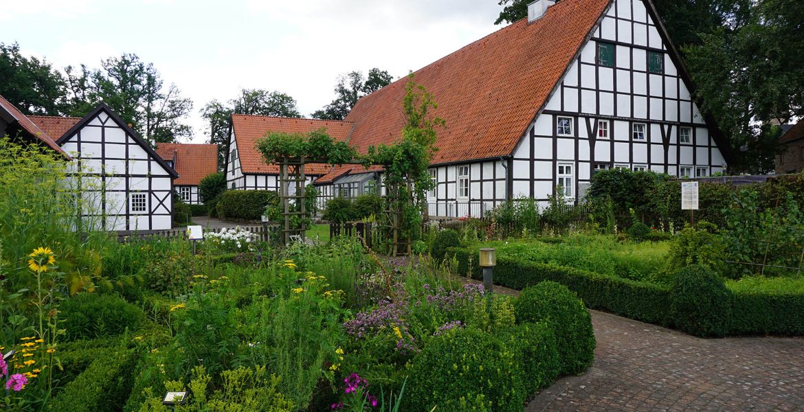 Het vakwerkhuis aan de Bachstraße 10 stamt uit de tijd rond 1750. In deze woning richtte de handelaar Johann Heinrich Sweering in 1818 een groothandel in linnen op. Zijn gelijknamige zoon beleefde halverwege de 19de eeuw de beginfase van de industrialisatie en richtte in 1857 als een van de eerste fabrikanten in het Münsterland een mechanische weverij op.